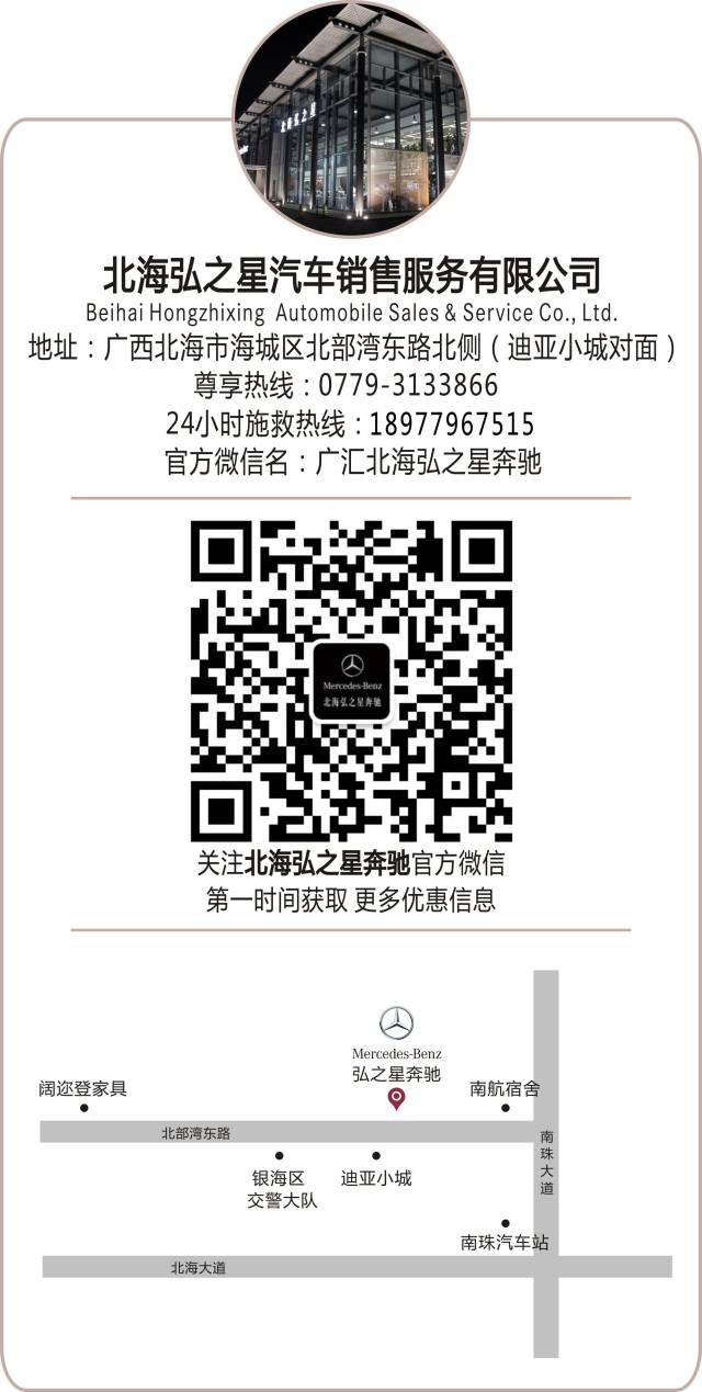 广汇北海弘之星,您身边的专属奔驰管家。广西北部湾地区首个汽车豪华品牌4S店,我们致力于将奔驰汽车及其国际化标准的“星徽”服务引入北部湾。
