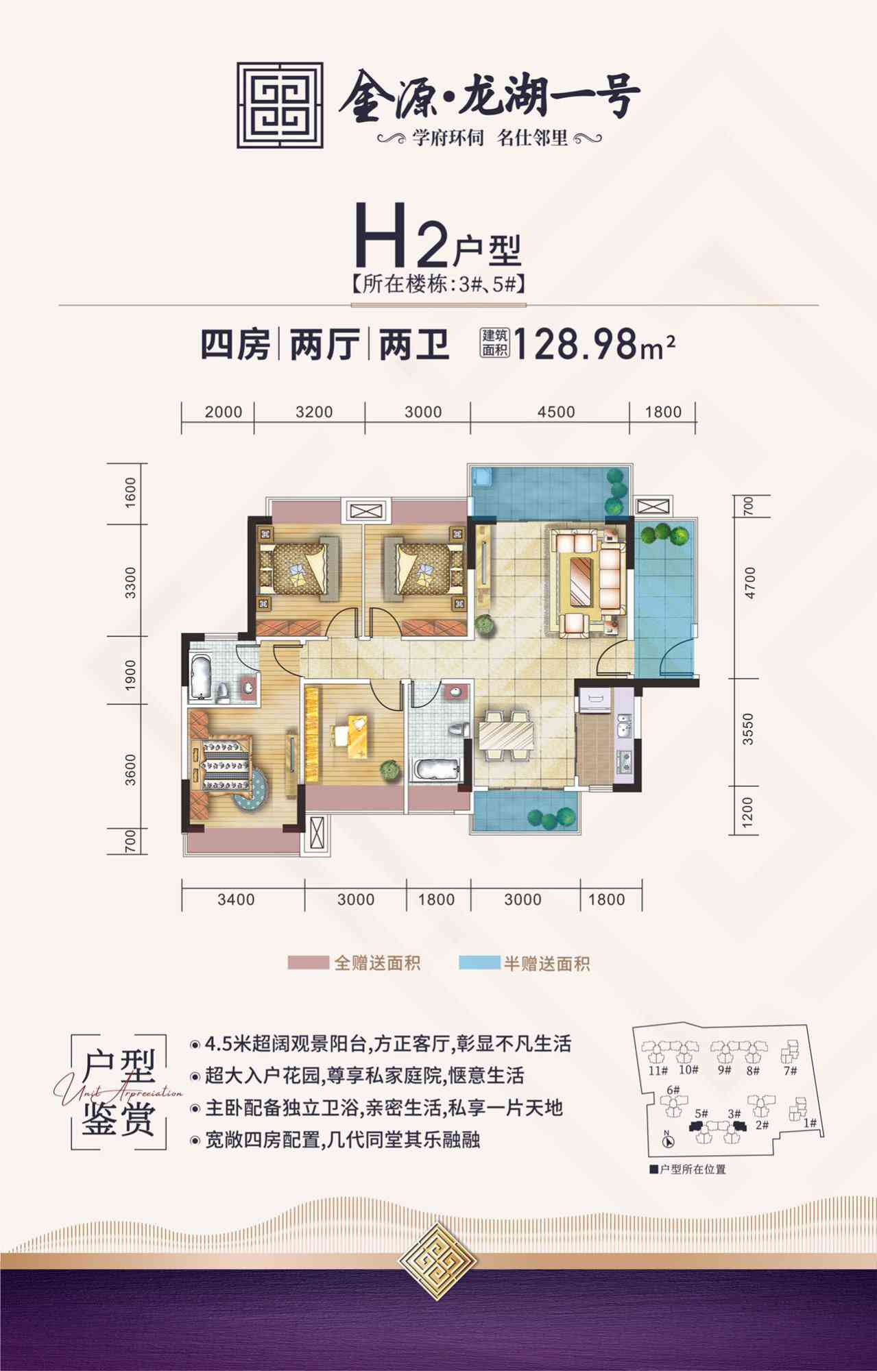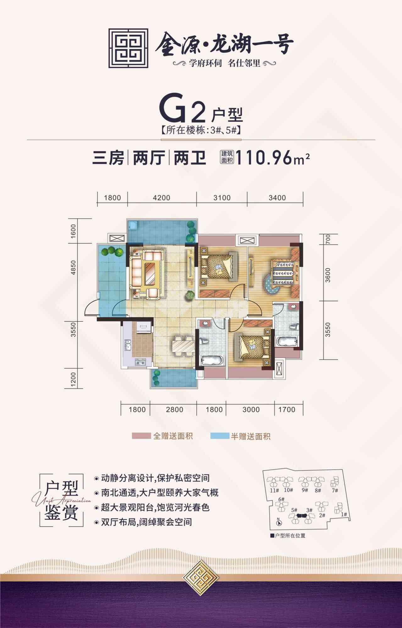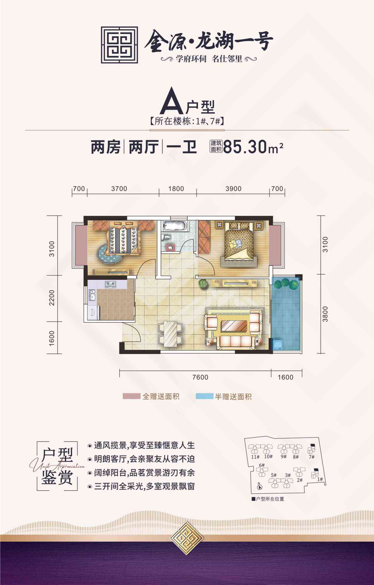 【金源龙湖一号】项目总占地面积约41亩,总建筑面积约10.9万平方米,由17层和28层高层建筑围合而成,项目整体采用现代简约风格打造,充满现代美感又不失高贵典雅。外墙采用马赛克瓷砖高端大气,美观大方,项目分两期开发,总户数848户,绿化率30%,小区配备充足的停车位,让您的出行更加方便舒适,所有的楼栋都是以南北朝向打造。所有户型空间设计合理,动静分明,合理的入户花园设计,开敞的客厅大窗为业主提供了良好的视觉空间,部分户型采用双阳台,大飘窗设计,景观视觉极佳,外景一览无余,无敌景观尽收眼底。所有户型都做到明厅、明厨、明卧、明卫、通风采光很好,居住的舒适度很高。