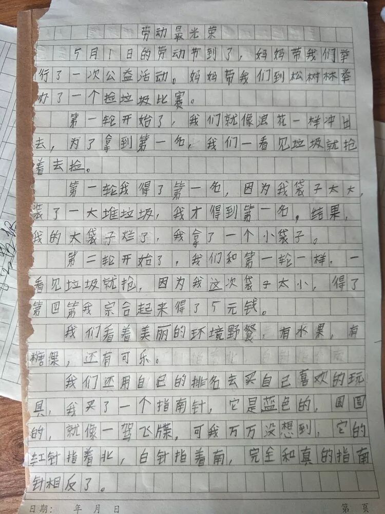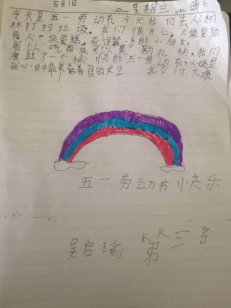 晚上,几位大孩子还写了日记! 稚嫩而工整的笔迹,淳朴的话语, 仿佛让人看到了那一张张满是汗水, 却又天真可爱、善良的小脸蛋。