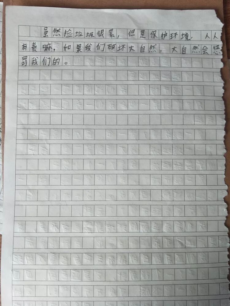 “虽然捡垃圾很累,但是保护环境,人人有责嘛,如果我们破坏大自然,大自然会惩罚我们的。