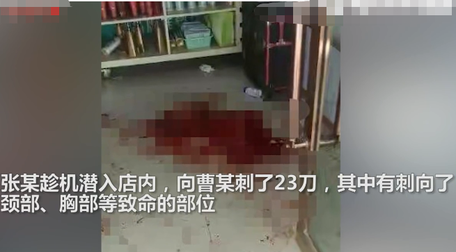 在案发的早晨,曹某因为有顾客来买化妆品,就把店门打开了,随后就没有来得及关上。张某趁机潜入店内,向曹某刺了23刀,其中有刺向了颈部、胸部等致命的部位。曹某六岁的儿子看到妈妈被杀害,急忙光着身子从店门口中爬出来,大声呼救。派出所距离事发的店铺仅10米不到,警方赶来将张某控制住,并将曹某送往医院进行抢救。但因伤势过重,最后不治身亡。