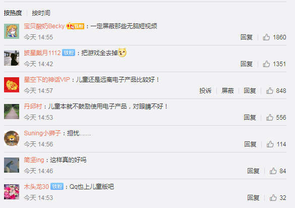 有网友评论,“担忧……”、“儿童还是远离电子产品比较好!”