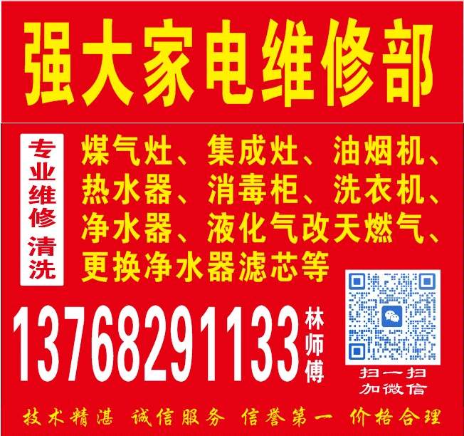 专业维修,煤气灶,热水器,油烟机,洗衣机,消毒柜,净水器,集成灶等:13768291133